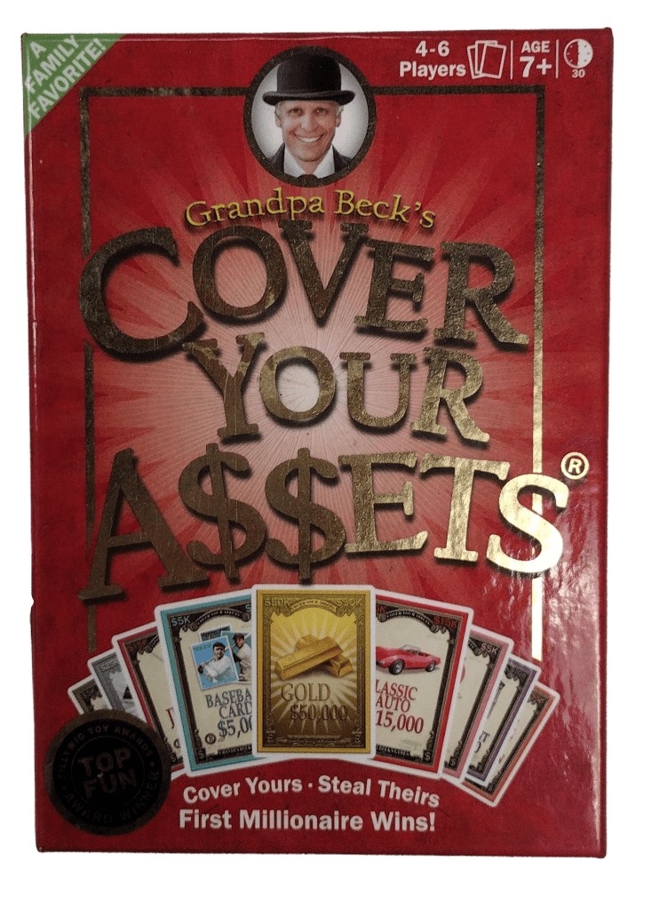 Cover Your Assets was ingeniously created by Brent Beck, who is known for his knack for designing engaging and family-friendly games under the Grandpa Beck’s Games label. This game is perfect for parties with family or friends. It is just as fun with two people as it is with 6. It’s easy to learn, making it accessible for players of all ages. The rounds are quick, keeping everyone engaged and on the edge of their seats.