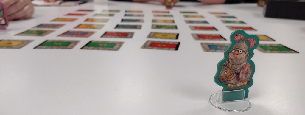 This is what it looks like when four competitive explorers get a hold of the game. Victory in this enchanting game is about crafting a clever path across the 6 x 6 grid, navigating through doors and around obstacles, all while basking in the shared delight of the journey. It’s a game that reminds us of the magic found in simple strategies, the warmth of shared laughter, and the thrill of exploring together. I finally made it across the table to win.