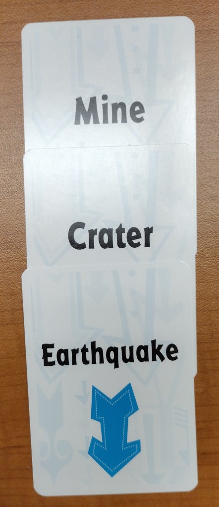 Winning In a Pickle is all about having the most pickles claimed by the end of the game. But let’s be real, the victory is just a cherry on top. The real joy comes from the journey through the wild, wacky, and wonderfully imaginative scenarios you create along the way. So a Mine can fit inside a Crater which is in an Earthquake….this was a funny one.