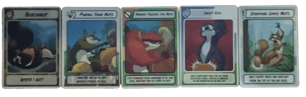 Winning in Nuts! is a matter of cunningly collecting and defending your nut cards while deploying your squirrels to disrupt your opponents’ plans. The player with 20 or more nuts is crowned the ultimate squirrel ruler of the nutty empire!