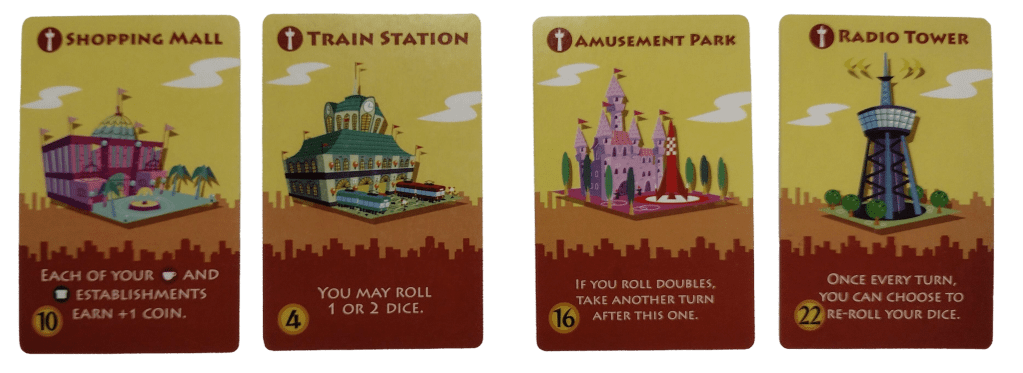 Victory in Machi Koro is claimed by the first player to construct all four of their landmark buildings. It’s a race against time and against each other, as we each strive to out-build and out-strategize our opponents. The win condition is as much about smart investment as it is about the whims of fate, carried on the wings of the dice.