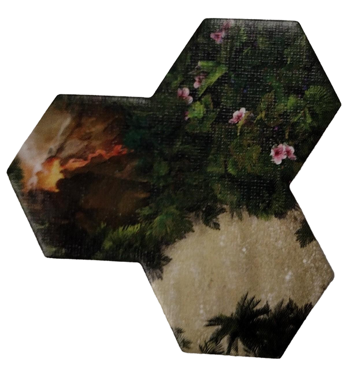 Here’s how our adventure unfolds: On your turn, you’ll draw and place a terrain tile, each action altering the island’s topography. These tiles stack, creating majestic mountains and sprawling lands. The strategic twist? You must always place a tile adjacent to a volcano, simulating the natural growth and catastrophic changes of our island.