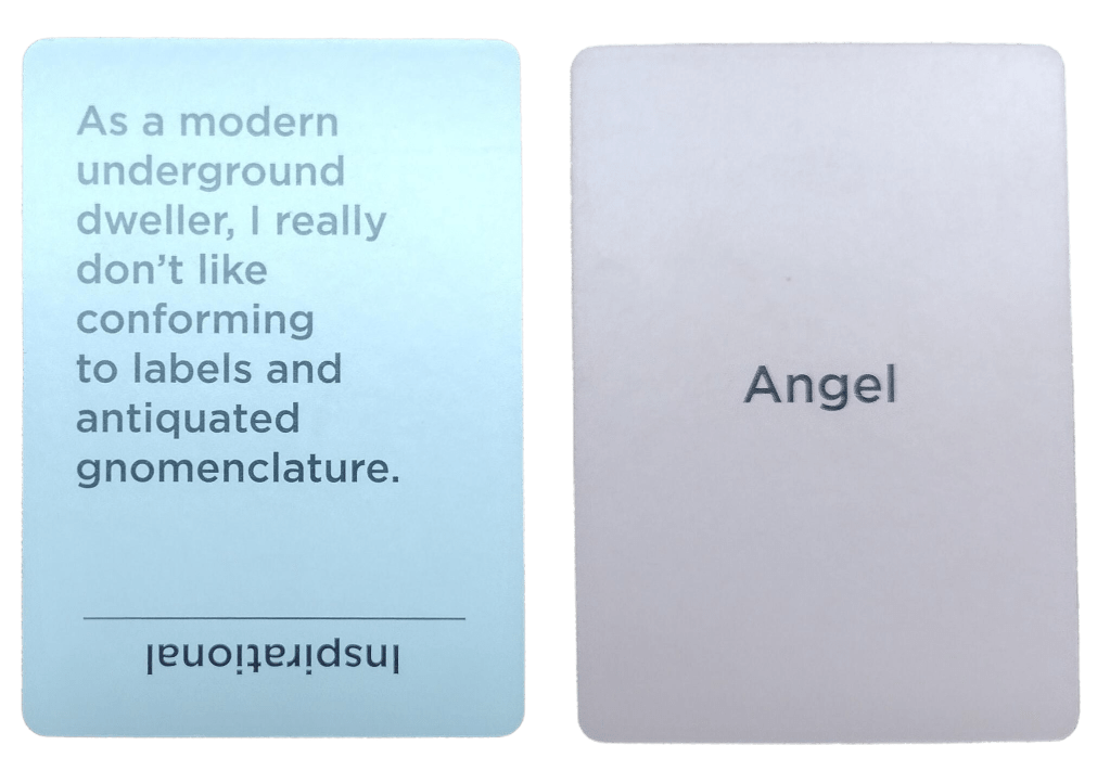 The first round was so much fun. The Judge pulled the Angel Character card. Of the seven cards I had, I felt like this card would be the perfect card to be read in an Angelic voice. I ended up winning this round.