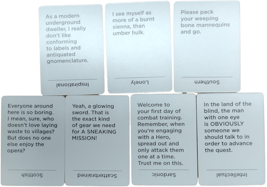 Here were the seven phrase cards I was dealt at the beginning of the game.