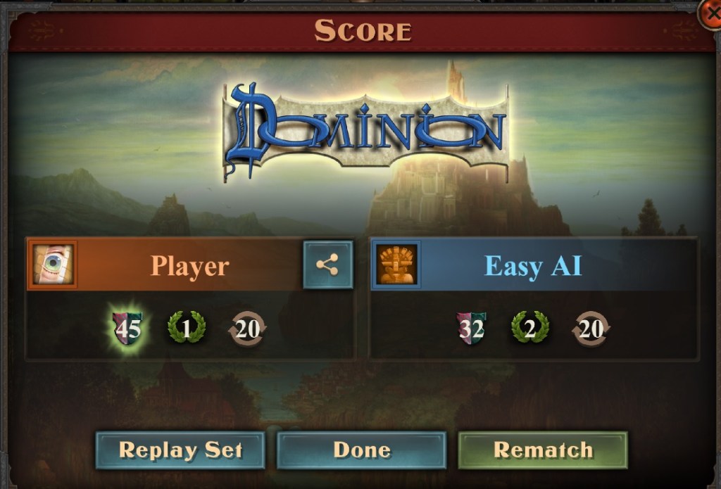 To all who seek to rule their own little corner of the world, Dominion offers not just a game, but a gateway to mastery, strategy, and the joy of building something truly your own, one card at a time. Here are the final results of the game.