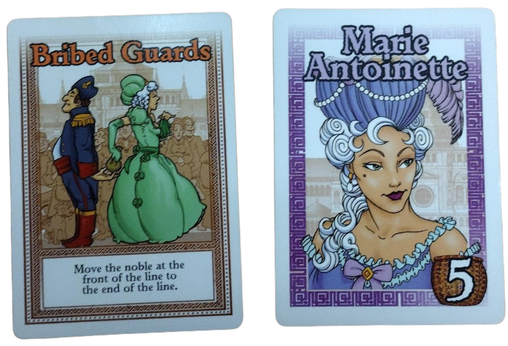 Using Bribed Guards and Marie Antoinette together, you can move Marie Antoinette to the front, ensuring her immediate execution. This maneuver disrupts opponents’ strategies while securing high points for yourself.