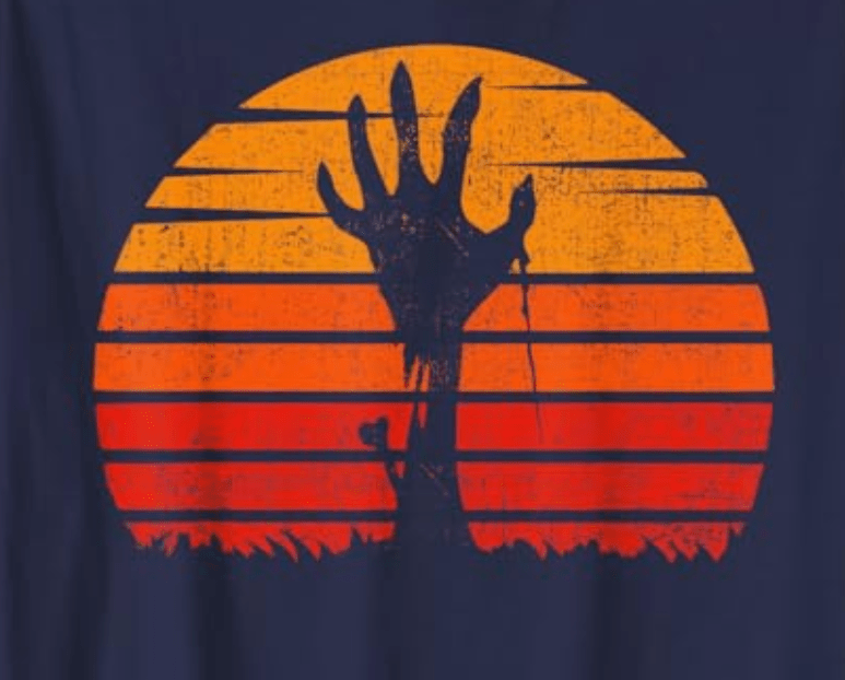 Consider using the affiliate link to purchase the retro zombie t-shirt: https://amzn.to/4aOefzg
