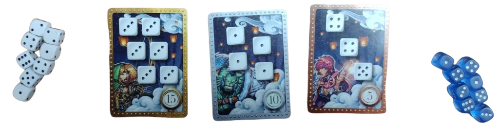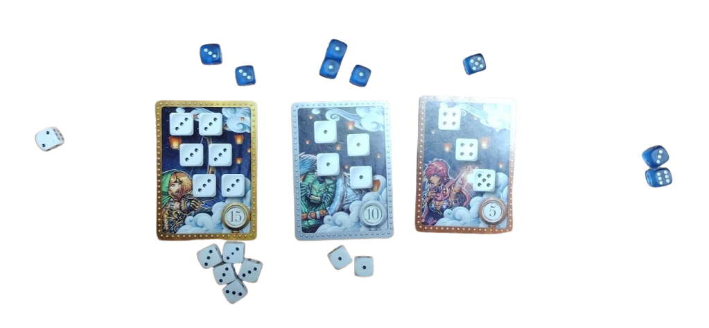 Introducing 8 dice per player changes this dynamic. More dice mean more opportunities to claim cards on a single turn, reducing the game’s length and enhancing its fluidity. It’s especially thrilling when several high-point cards are in play, as players can more aggressively aim to complete them.