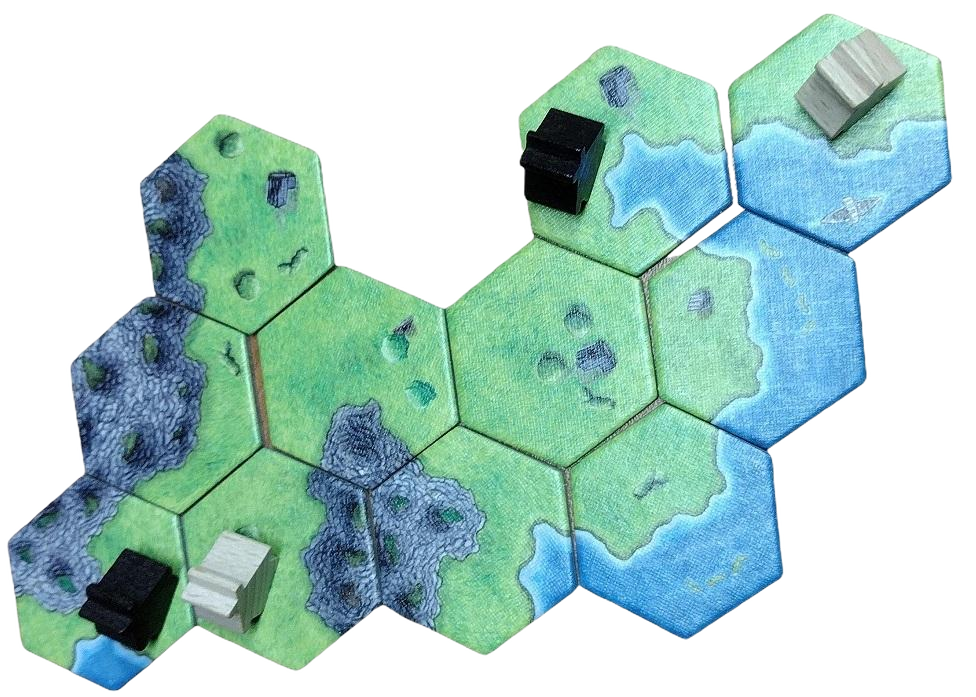 The game unfolds in two distinct phases, each requiring its own unique strategy. The starting tiles and the face down tiles are the center of the first phase where the focus is tiles replacement. In the first part of the game, players take turns drawing and placing landscape tiles next to previously placed tiles. The objective is to create a contiguous landscape, connecting fjords, fields, and mountains in an ever-expanding map. Each tile must be placed so that it matches the landscapes on the adjacent tiles, ensuring a seamless vista. Here are a few snapshots from the first phase of the game.