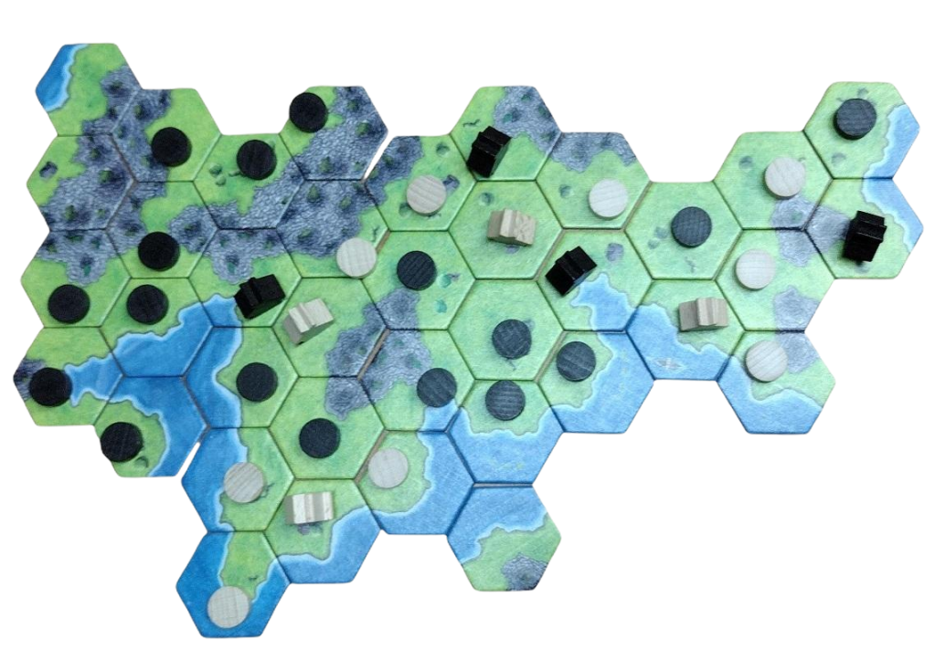 Once all tiles are placed, the second phase begins. Starting from their farmhouses, players extend their reach by claiming adjacent territories. The aim is to strategically place your farmhouses during the first phase so that you can maximize your territory in the second phase. The player who successfully claims the most territory by connecting their farmhouses to advantageous areas of the board wins the game.