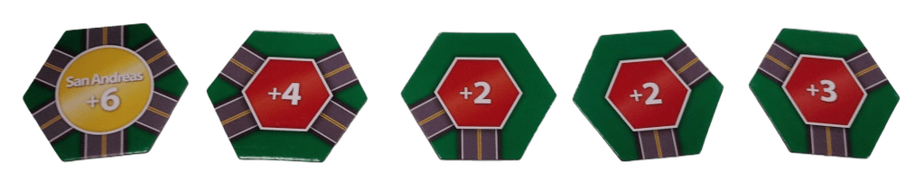 There are 13 intersection tiles for crafting your roads, along with 1 central San Andreas tile. In order to get points for building the road, the road needs to have an end and a beginning.