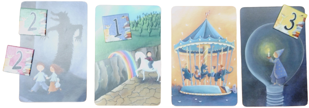 Players then secretly vote for which card they believe belongs to the storyteller, using a delightful voting board that matches the game’s artistic style. Points are awarded based on how many players correctly or incorrectly guessed the storyteller’s card, encouraging clever clues that are just ambiguous enough.