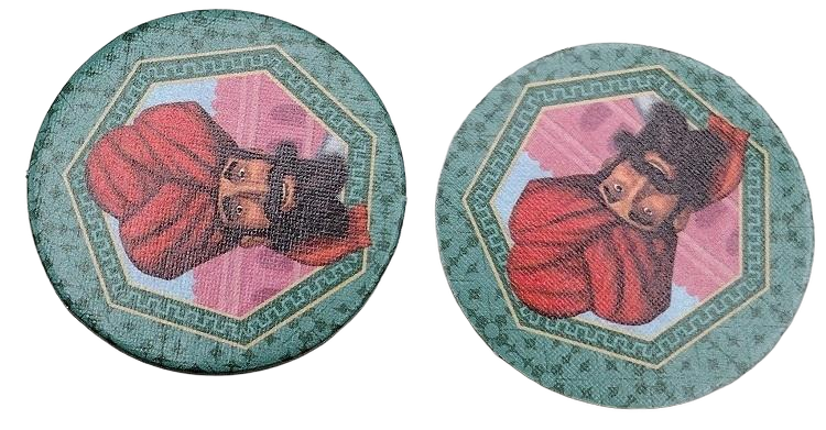 Each type of good (diamonds, gold, silver, cloth, spices, and leather) has its own stack of tokens, with higher value tokens at the top. The sooner you sell, the higher the reward.
