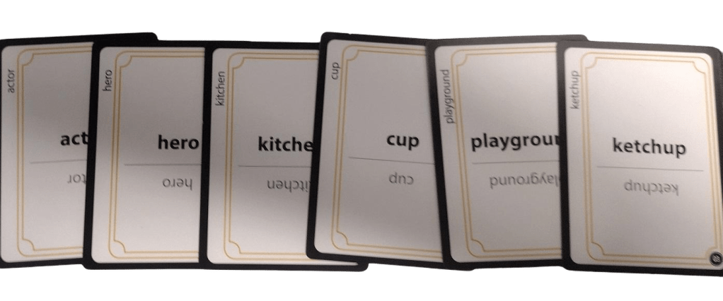 - Card Play: Each round, players from each team draw two cards, each reading one word aloud.