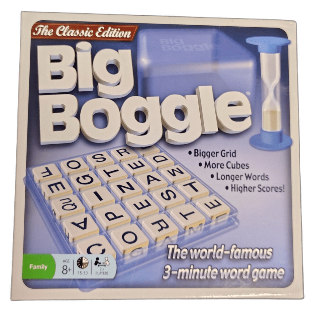 Each turn in Big Boggle is a thrilling race against time. Once the cover is lifted, a sand timer dictates a three-minute countdown, during which each player searches frantically to form words. The twist? Words must be at least four letters long, pushing us to think bigger and stretch our vocabularies further than in traditional Boggle.