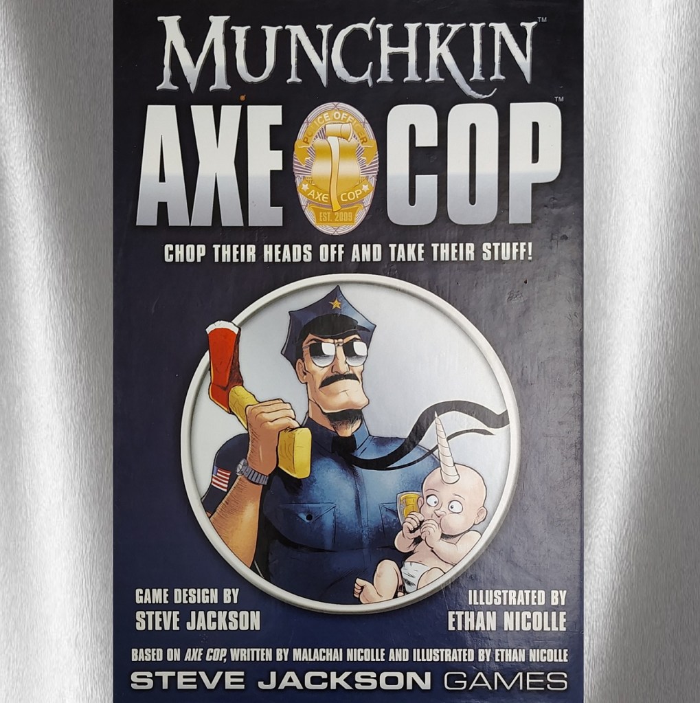 Munchkin Axe Cop retains this core gameplay while layering on the outrageous humor and wild imagination of the Axe Cop universe. This version of the game includes four class cards: Cop, Man, Soldier, and Warrior.