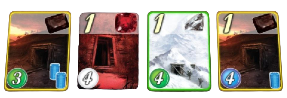 I can also decide to place my red Stronghold on a card, blocking the other player from getting the green card. If they really want that card, they will need to put their next blue Stronghold there, in order to remove mine and unblock the card.
