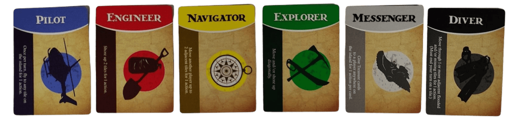 If I had to choose the most powerful, it would be the Pilot. The ability to fly anywhere on the board once per turn is a game-changer—rescuing stranded teammates, collecting treasures, and escaping at the last moment. But every role has its moment to shine! While it isn’t glamorous, it is so important to keep your posse safe by shoring up two tiles in a turn. It is indispensable to have an Engineer on the team.
