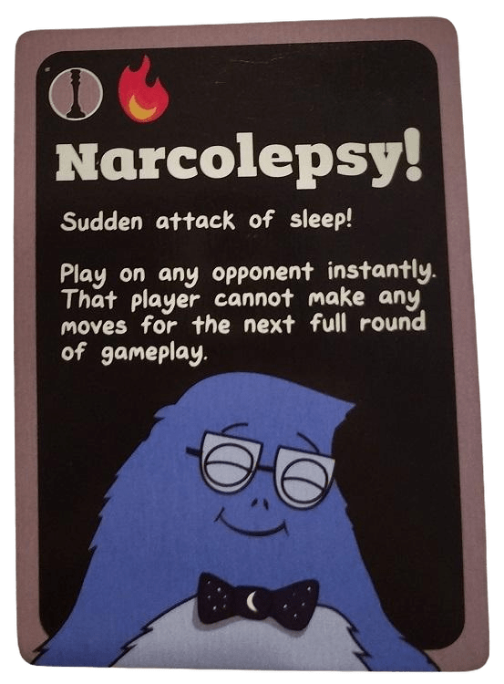 The rules are delightfully simple, which means you can jump into the fun without reading a medical textbook. Each player starts with a full set of organs, bravely awaiting their inevitable destruction. On your turn, you draw and play as many attack cards(above) as you like, targeting specific organs in your opponents’ bodies. Players can defend themselves with immunity cards or cunning strategy—if they’re lucky. The game continues until only one person has at least one organ left, making them the ultimate survivor.