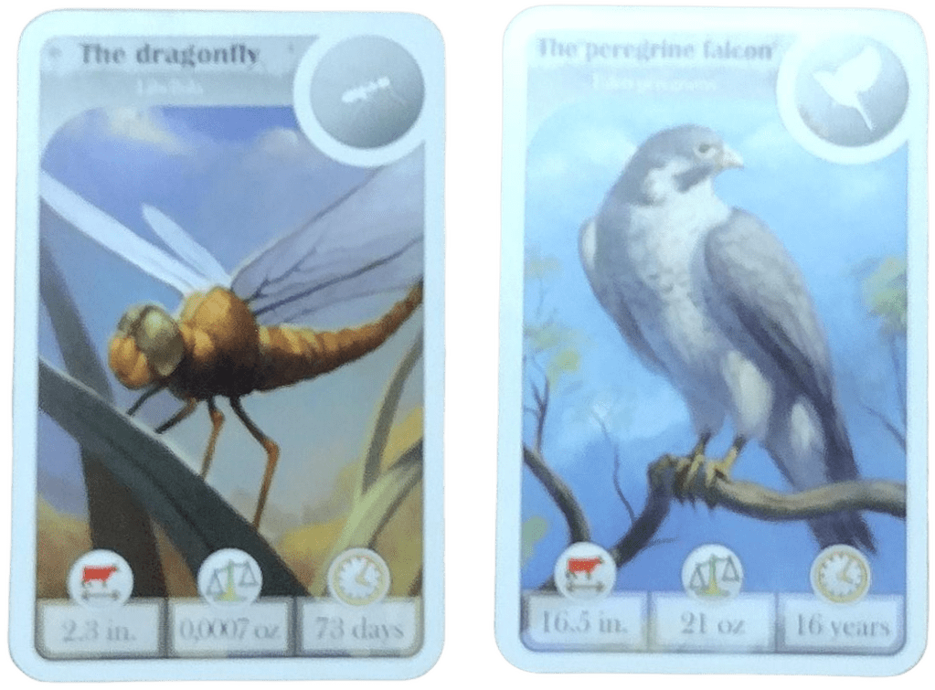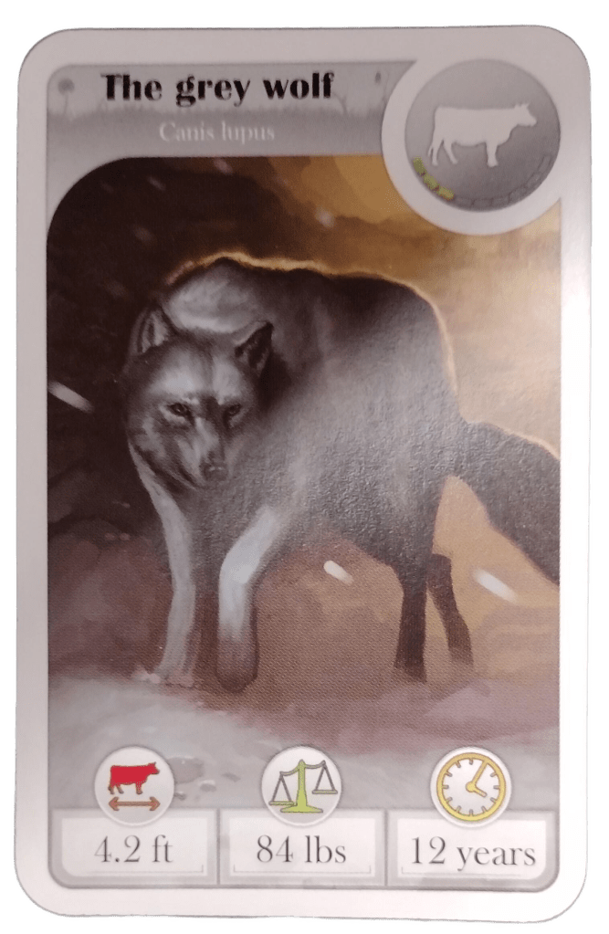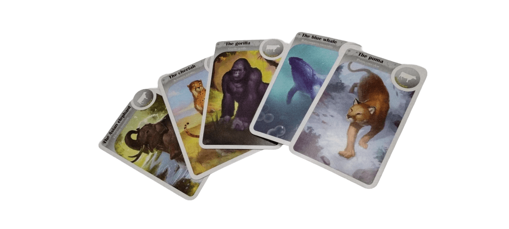 On the back of each card are three pieces of information: size, weight, and lifespan. But here’s the fun twist. When you play, you don’t get to see those numbers right away. Your task is to figure out where the animal belongs in a growing timeline or scale based on the stat you’re using that round.