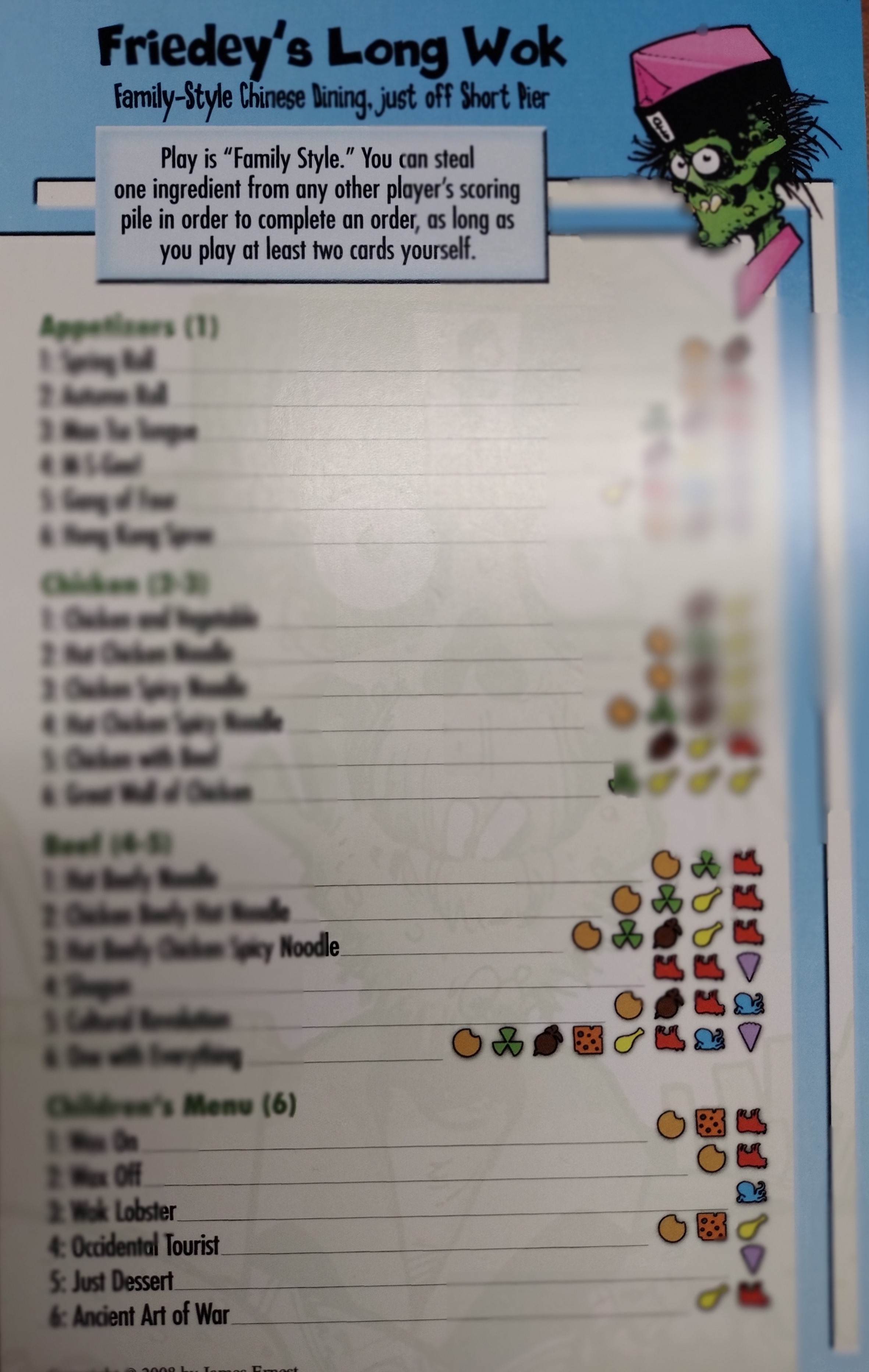 I just clocked out of my shift at Lord of the Fries, and let me tell you—this zombie-run fast food joint is not for the faint of heart or slow of wit. It’s the kind of card game where things start out silly and only get sillier, with each round full of laughter, wild trades, and a growing sense that maybe, just maybe, you actually could run a restaurant if the customers were undead and the menu made absolutely no sense. These menus are a bit blurry because I wanted to not show all the secrets. 😉