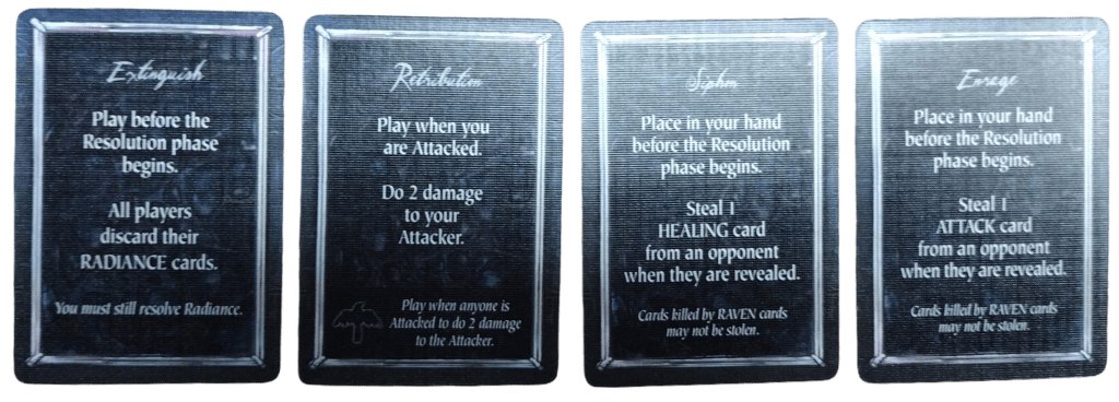 What fascinates me most is the transformation. If your health drops to zero, you become a crow. From that moment on, your game changes. You’re no longer fighting for victory points—you’re trying to claw your way back to human form by collecting Radiance and Healing. It’s this eerie little arc of downfall and redemption, and I can’t wait to see how it plays out at the table.