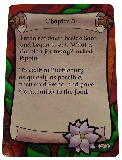 Before we play, we pause. There’s a quote from the book—Chapter 3 of The Fellowship of the Ring: Frodo sat down beside Sam and began to eat. ‘What is the plan for today?’ asked Pippin. ‘To walk in the Bucklebury as quickly as possible,’ answered Frodo, and gave his attention to the food.