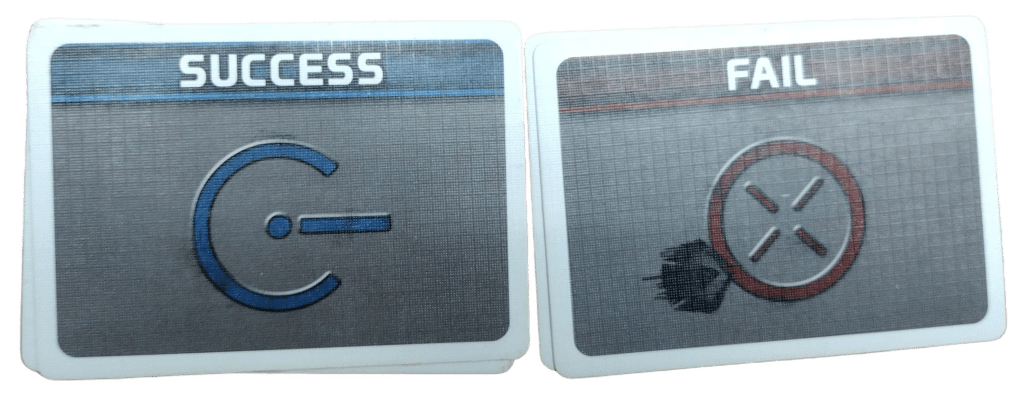 Approved teams receive two cards each, one for Success and one for Fail. Resistance members must always choose Success, but spies can play either card to sabotage the mission. If even one Fail card is played the mission fails; otherwise it succeeds.