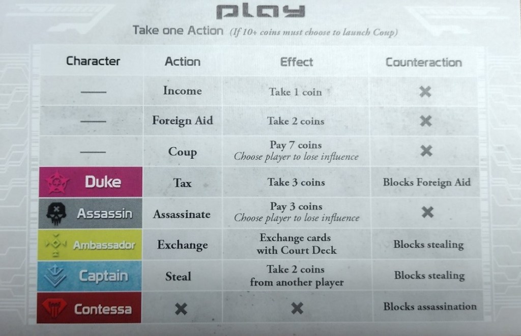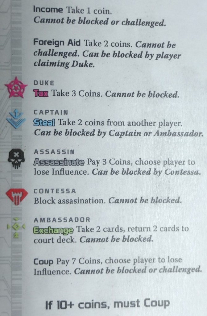 Casey, playing cautiously, took a single coin as income. That is the safest action, since no one can block or challenge it. Robin, however, had other ideas. They leaned in and claimed the Captain, stealing two coins from me with a little smile. I narrowed my eyes but let it happen. After all, the real fun is when the bluffs start piling up.Next round, I had enough coins to perform an assassination. I paid three and declared that I was taking out Robin. Without missing a beat, Robin claimed the Contessa and blocked me. Now here is the twist. I decided to challenge. Robin revealed their card and, sure enough, it was the Contessa. I gasped, lost an influence, and had to reveal one of my cards.