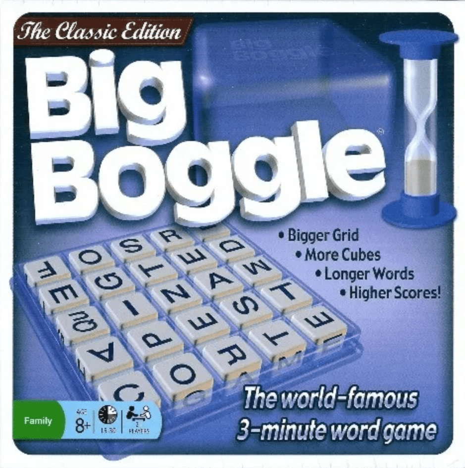 Why I Love It: The time pressure creates focus and excitement. Everyone’s simultaneously searching the same grid, but somehow we each spot different words hiding in those letter clusters.
