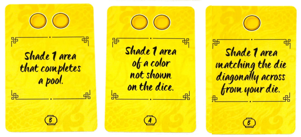There’s a lovely puzzle here. You’re always trying to balance your own goals with the patterns emerging across the lake. Should you go for that symmetrical firework burst for big points, or chase the Emperor Cards before someone else snatches it up? Here are a few of the Emperor Cards..