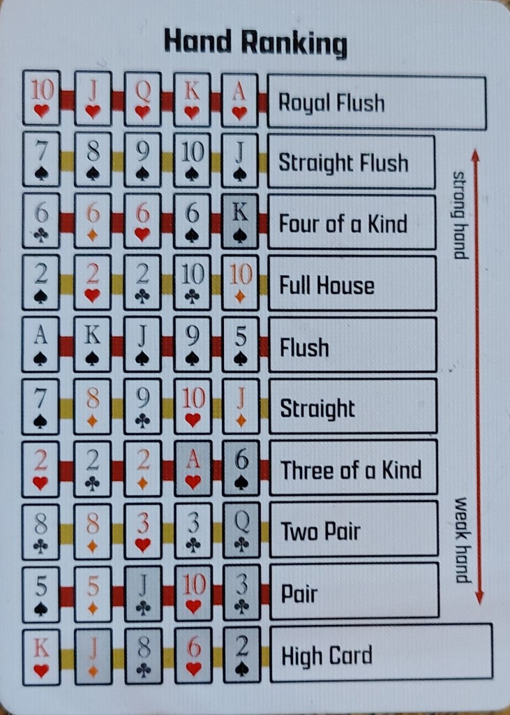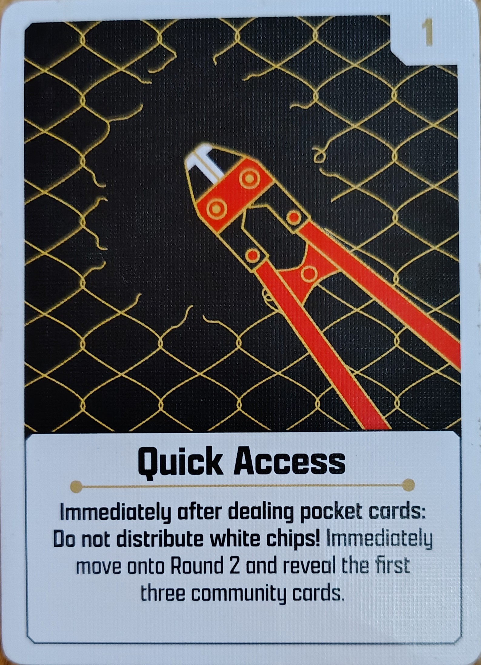 The contents, while simple, include a lovely box and other cards. One of the favorite was the Quick Access cards. After the first two cards were dealt out, we went right to the next round. This is one less round to really grok how the hand is. This small group of friends really knew each other, we did very well because we have known each other for decades. We successfully got the correct hand strength for the red chip, without the extra information from round one!