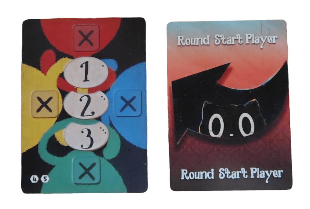 The box also included a central board with a grid to track played cards, colored tokens for each player, and a player board where we marked our “declared” suits. Everything is clean, crisp, and oddly elegant. Even the insert made me smile.