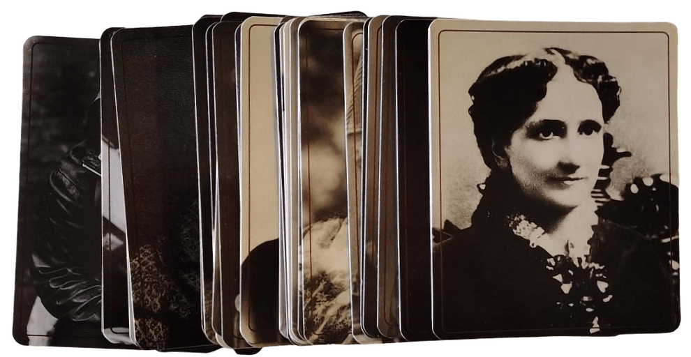 Margaret Sanger advocated for birth control and reproductive rights, sparking difficult national conversations that reshaped women’s health. The deck also honors powerful voices in literature and social thought. Eleanor Roosevelt redefined the role of First Lady and became a global advocate for human rights, helping shape the Universal Declaration of Human Rights.